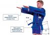 По размеру: Рукав ненамного шире в верхней части, чем в манжетах — напоминает конус. Когда рука висит прямо, рукав свободен, локоть не выделяется. Рукав должен быть свободен по всей длине, а не только вверху или внизу.